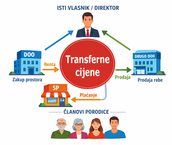 👨👩👧👦 Povezana lica su: bračni ili vanbračni supružnik, djeca, roditelji, usvojenici, kao i braća i sestre koji žive u zajedničkom domaćinstvu.